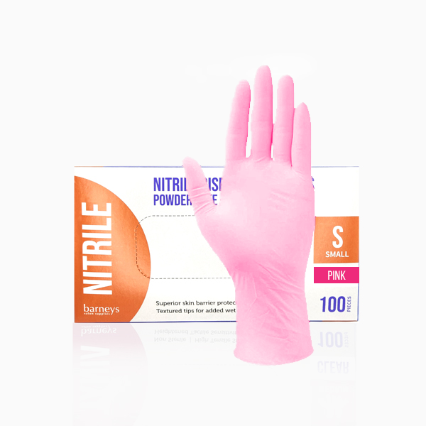 Barneys Nitrile Disposable Gloves Powder Free in Pink - Small, are an ideal tool in maximising safety in your beauty salon or treatment practice. Crafted with added finger texture to provide enhanced wet and dry grip for precision touch and handling, making these gloves ideal for laser, waxing or general beauty treatments